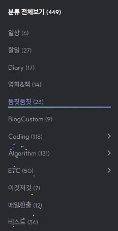 기본 메뉴도 깔끔하고 이쁘지만 나는 다크모드를 위해서 눈에 띄는 효과를 주고 싶었다.
