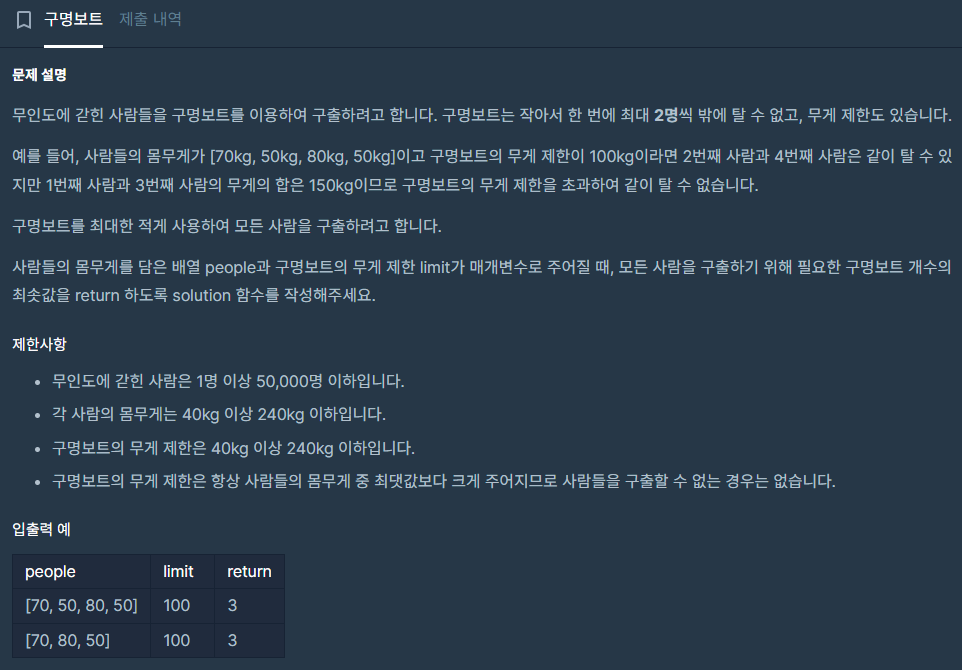 사람 수 = 초과하는 사람들 구명보트 수 + 짝지어 타는 사람들 구명보트 수 * 2