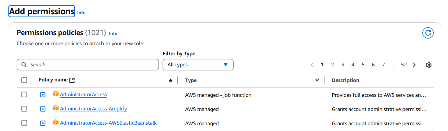 - To do so, we will assign permissions to AWS services with IAM Roles