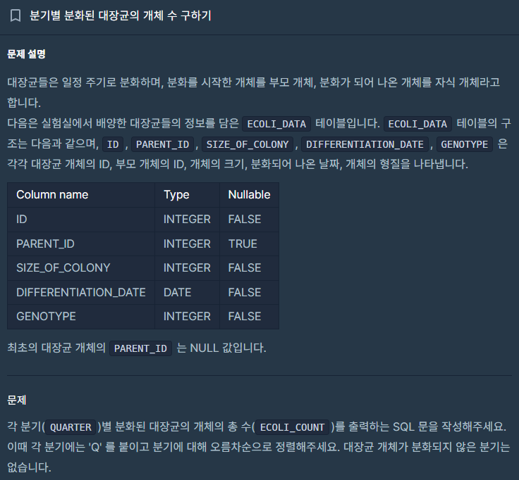 내가 GROUP BY 절에 별칭인 `QUARTER` 을 썼는데 코드가 프로그래머스 콘솔에서 돌아간다.