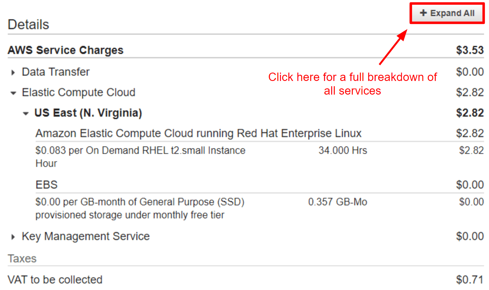 When you exceed the AWS Free Tier, the red graph represents the actual costs incurred.