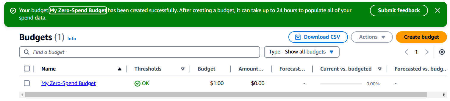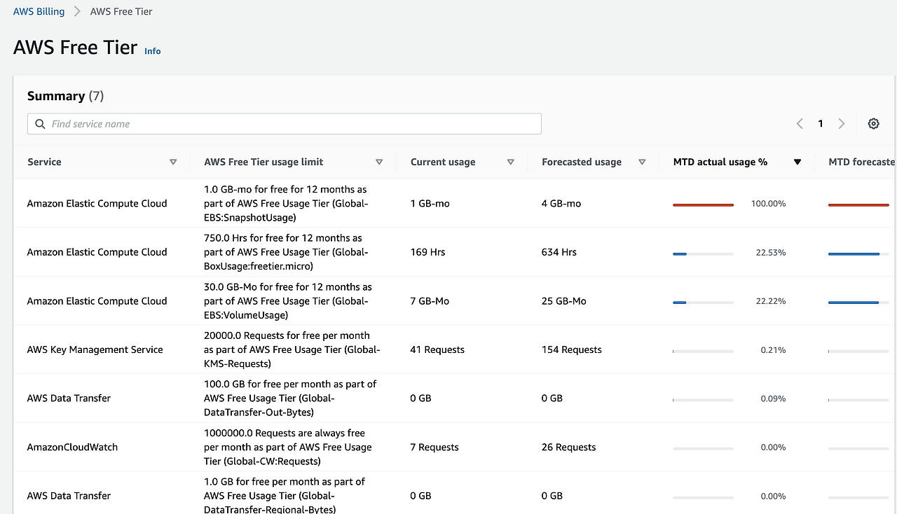 This tab is useful for ensuring that your AWS expenditures stay within the expected limits, helping you to manage and optimize costs.