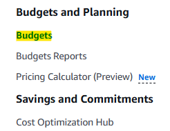Billing and Cost Management > (Side Menu) Budgets and Planning > Budgets