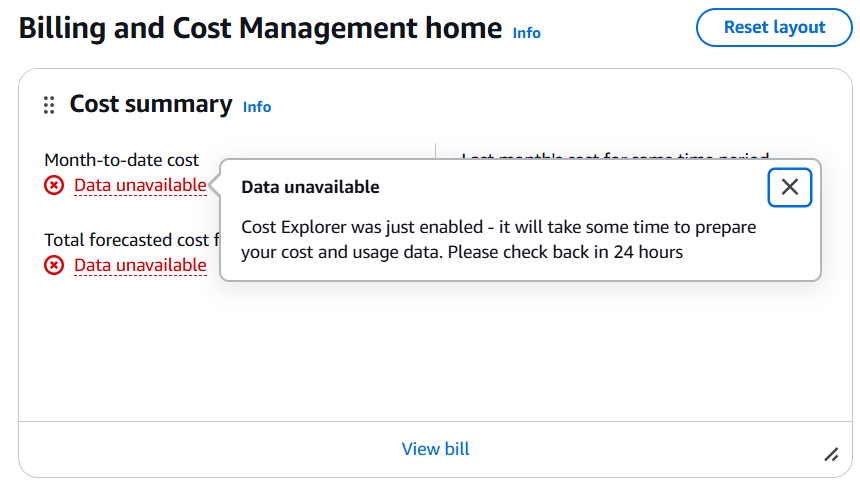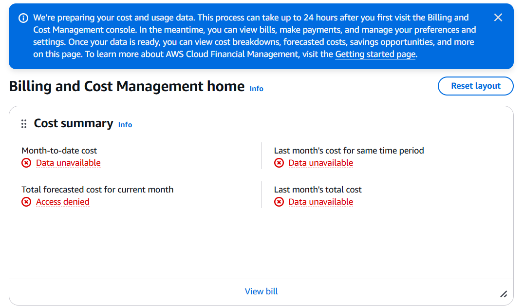 Back to my IAM account, It takes some time for AWS to show Billing data.