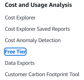 Billing and Cost Management > (Side Menu) Cost and Usage Analysis > Free Tier