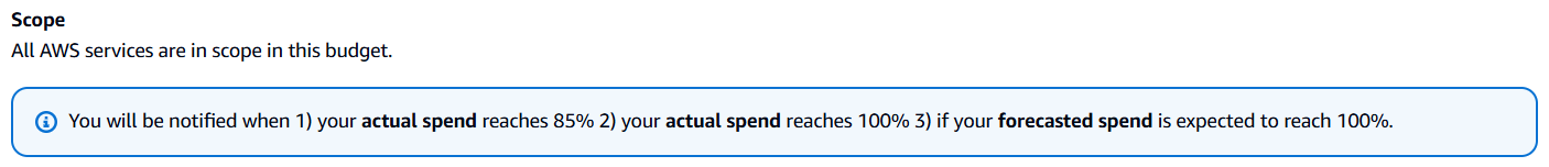 지출의 85%가 넘어가면 메일 한 번을 받게 되고, 100%가 넘어가면 다시 메일을 받게 됨.