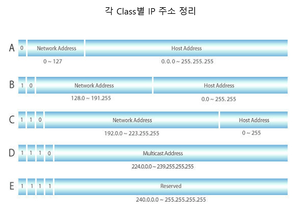 - 위 경우, 앞의 24비트(255.255.255)가 네트워크 주소, 마지막 8비트(.0 ~ .255)가 호스트 주소이다.