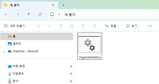 나는 "OrganizeDesktop.bat"로 입력했는데, 한글로 "바탕화면정리.bat" 이렇게 입력해 줘도 된다.