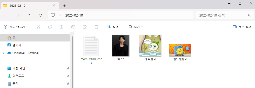 - 그리고 처음에는 바로가기 파일만 제외하는 배치코드를 짰는데 폴더들까지 YYYY-MM-DD 안에 모두 같이 들어가서 바로가기 파일 + 폴더 제외하고 남은 파일만 정리되도록 다시 코드를 수정했다.