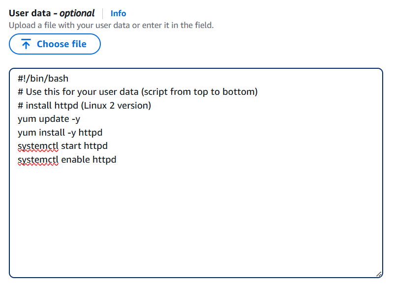 인스턴스를 생성할 때 Advanced details 로 가서 이번에는 User Data에 아래 코드를 넣어준다.
