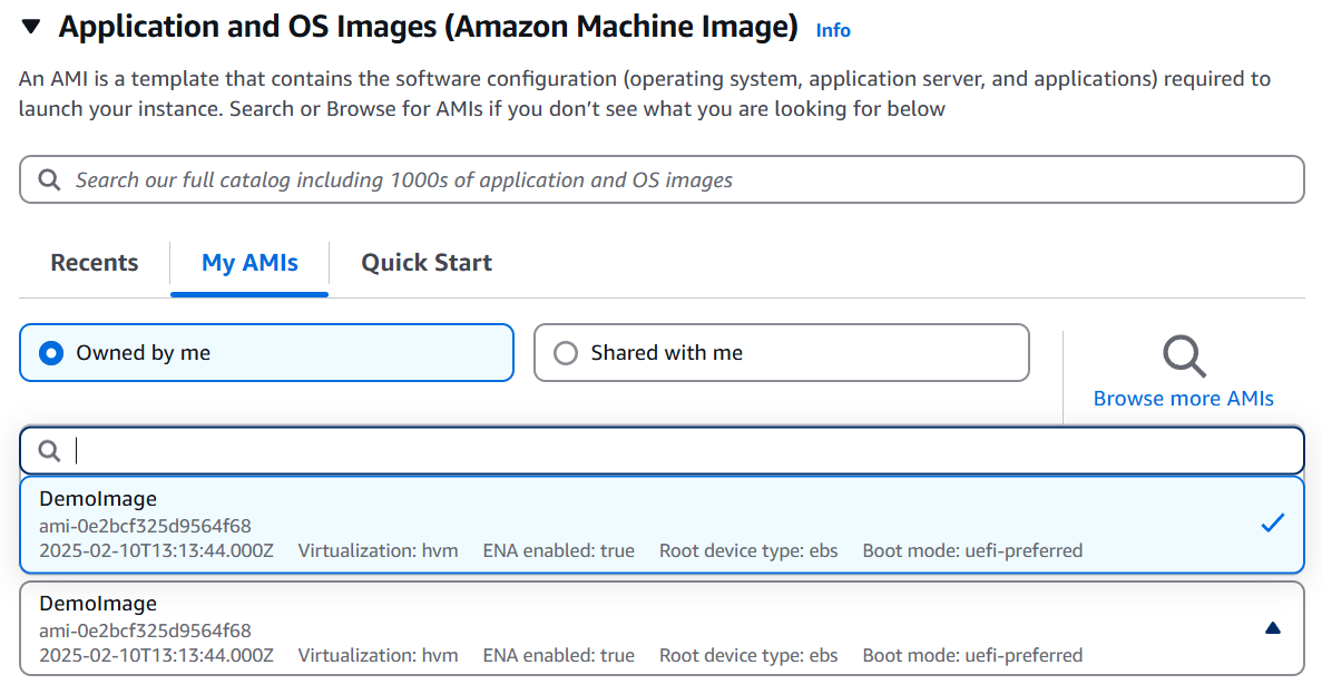 ▶ AMI는 EC2 인스턴스를 쉽게 생성하고 관리할 수 있도록 도와주는 OS + 설정 패키지로 운영 체제(OS), 애플리케이션, 실행 환경 설정 등을 포함한 EC2 인스턴스의 사본(이미지)이다.