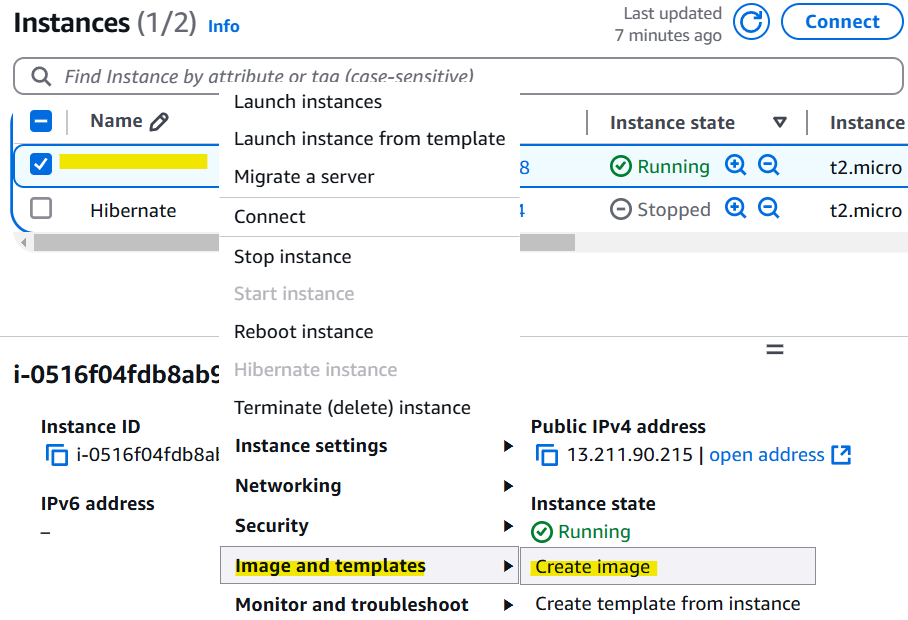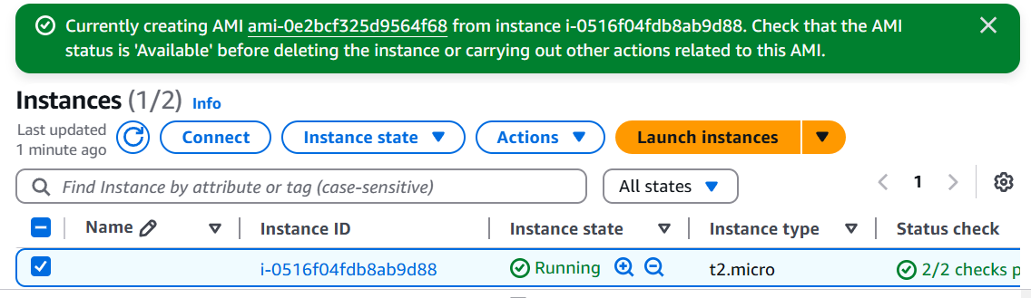 이제 Amazon AMI가 생성되었기 때문에 생성된 AMI에서 인스턴스를 시작할 수 있다.