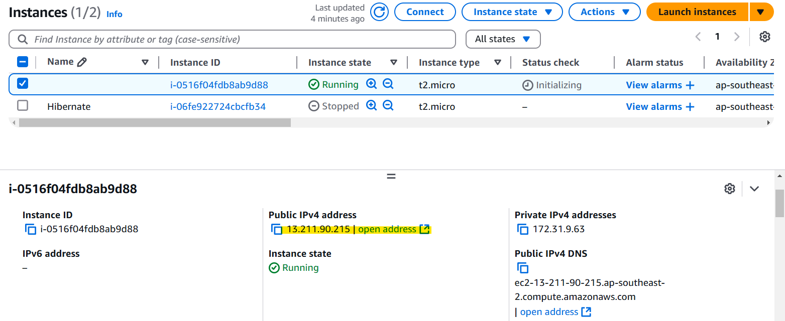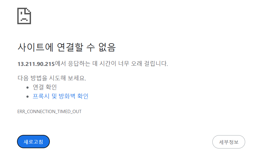 인스턴스를 생성한 직후 공용 IPv4로 서버에 접속하려고 하면 작동하지 않고 연결 오류가 발생한다.