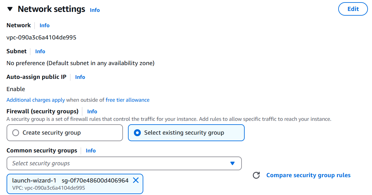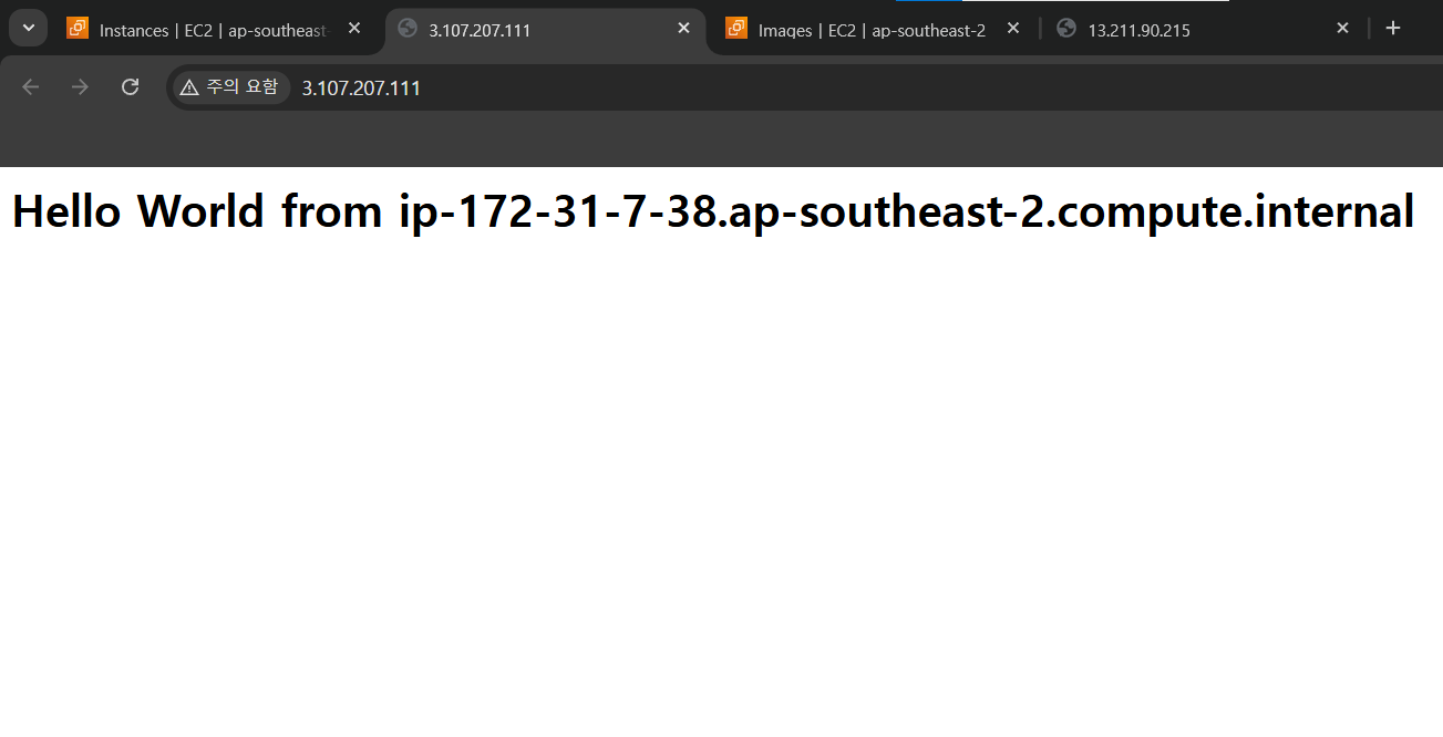 EC2 대쉬보드 > Instsasnces > Launch instances > Application and OS Image (Amazone Machine Image) > My AMIs > Owned by me > 기존에 생성한 AMI 선택 > 키 페어선택(옵션) > 기존 보안 그룹 선택
