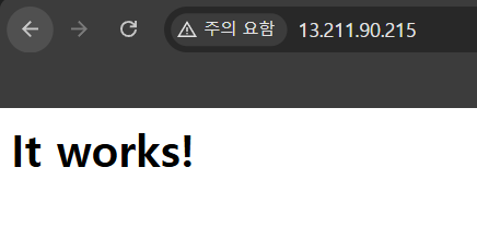 화면에 It works! 라고 뜨면 아파치 웹 서버 기본 페이지가 잘 뜬 것이다.