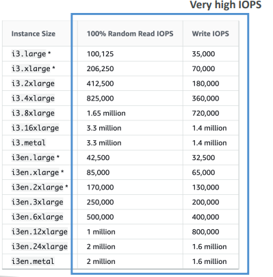 - Instance Store는 NVMe SSD 기반으로 기본적으로 높은 IOPS를 제공하지만, 데이터가 휘발성이다.
