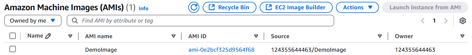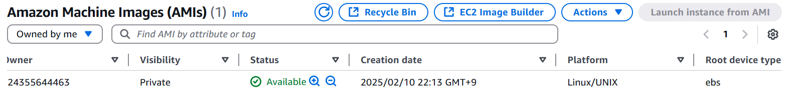 생성된 AMI를 확인하려면 AMIs 탭으로 가서 확인할 수 있다.