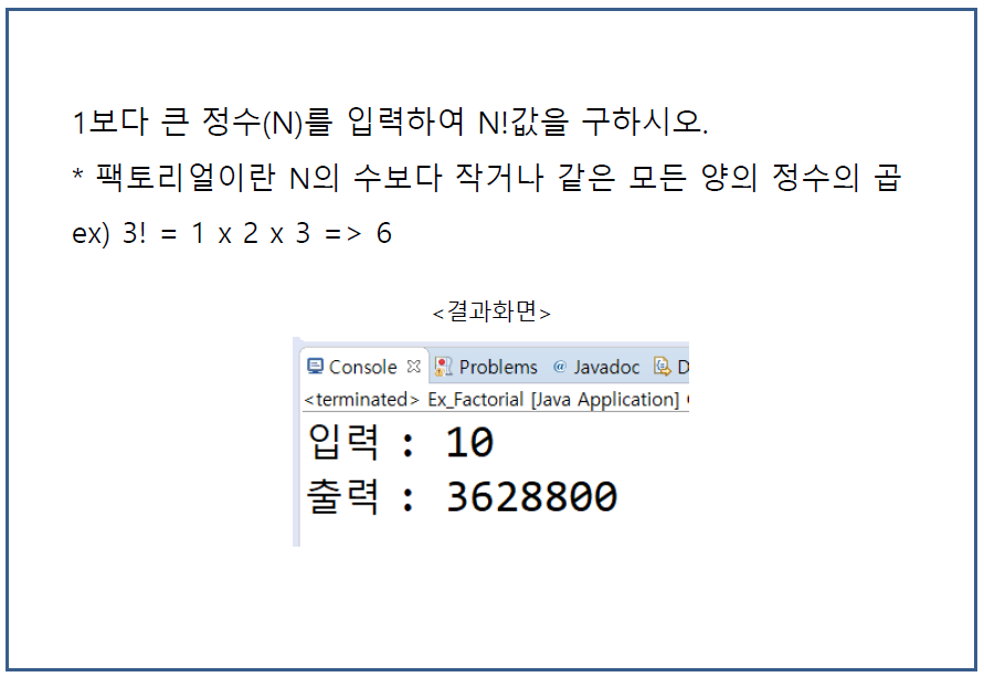 System.out.println("출력 : " + factorial);