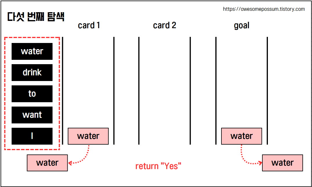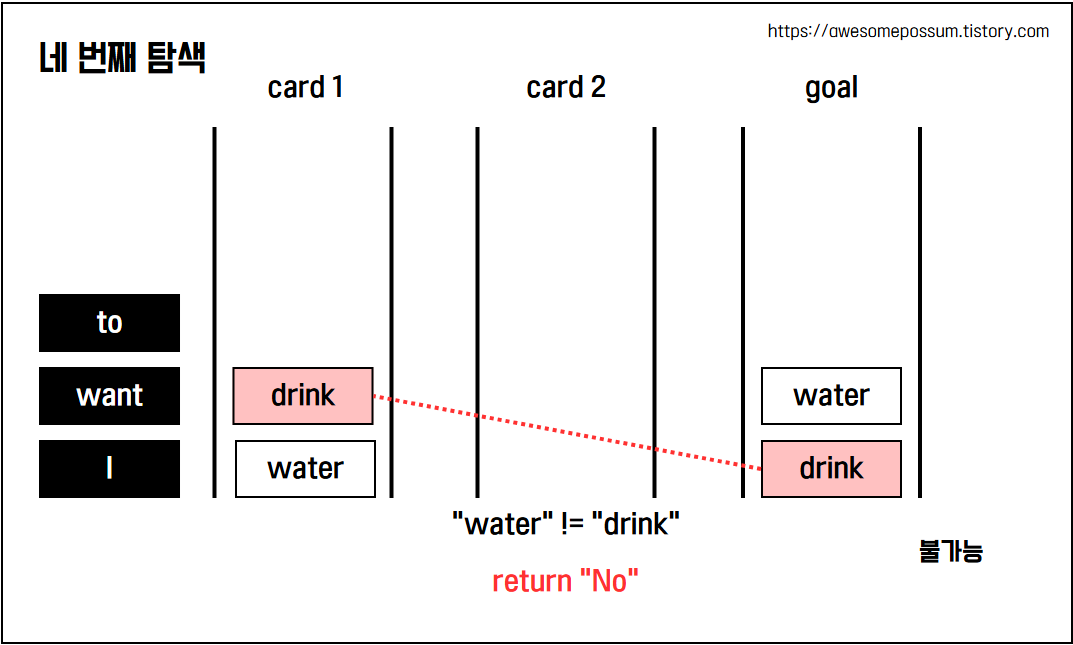 public String solution(String[] cards1, String[] cards2, String[] goal) {
