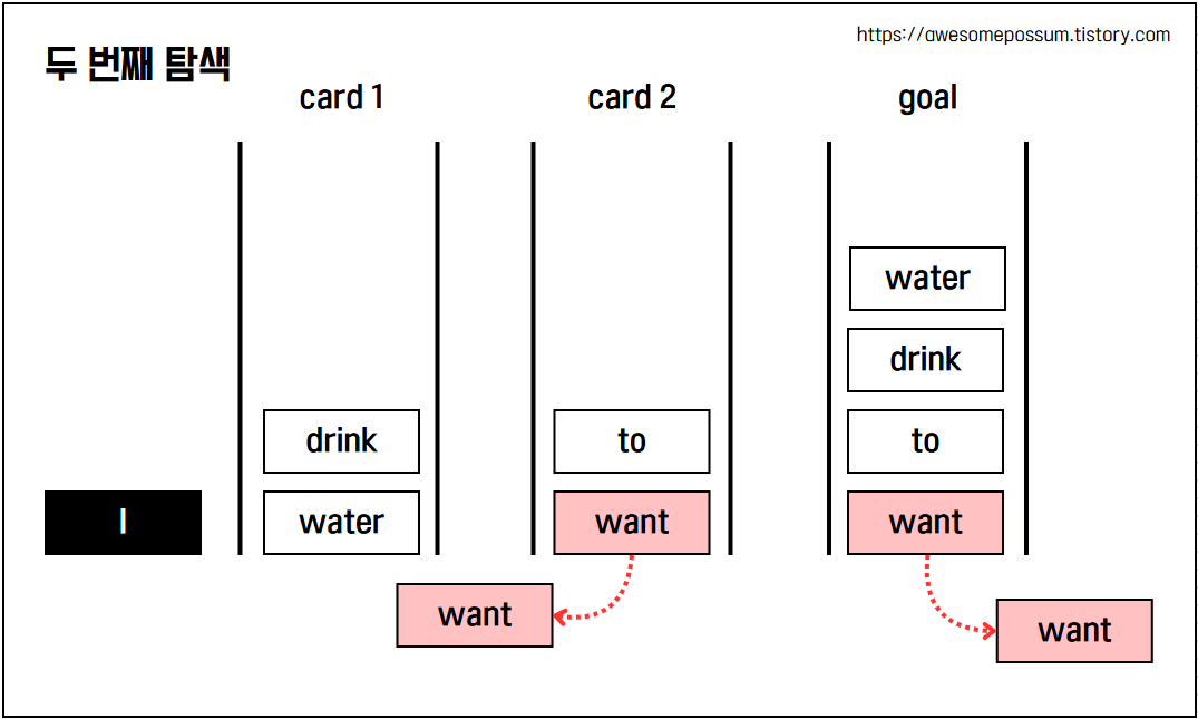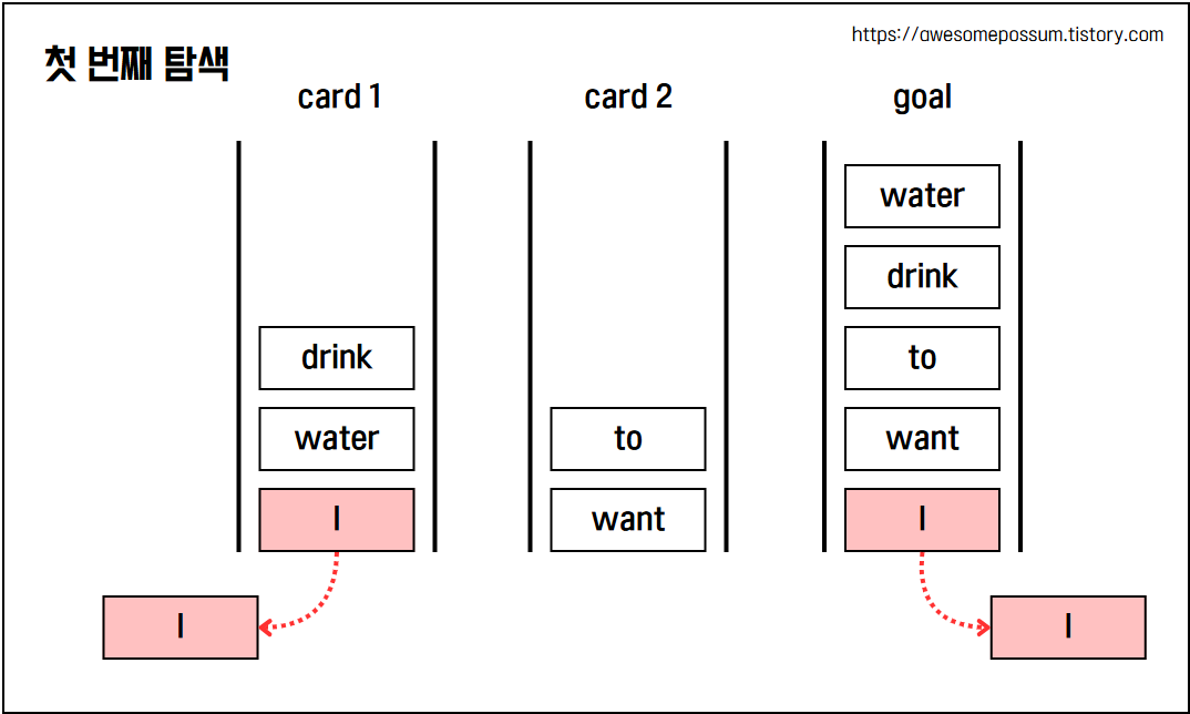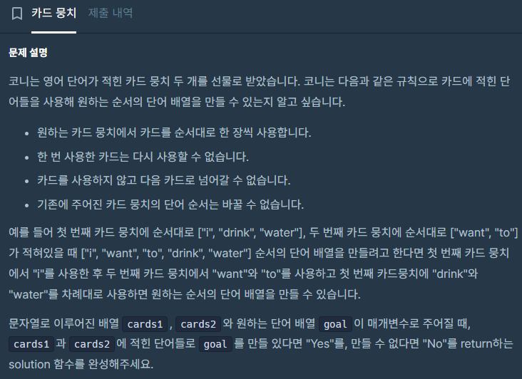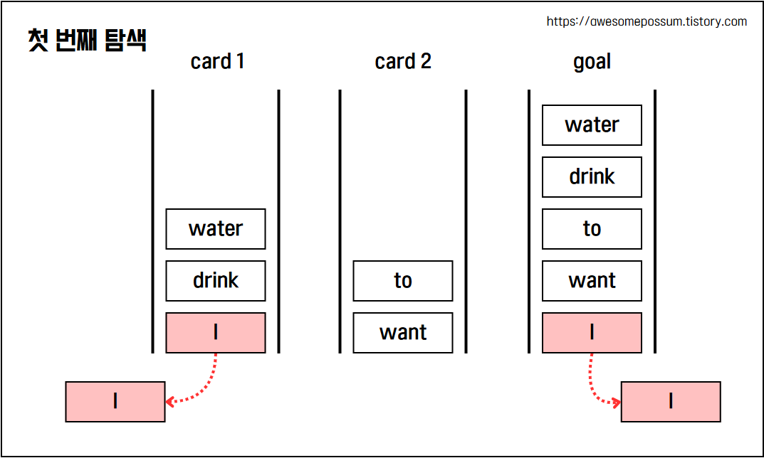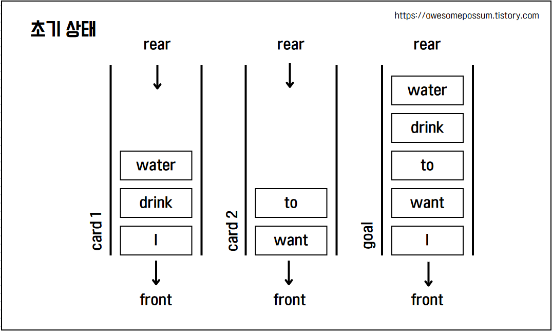 그래서 card1, card2, goal 을 큐를 사용해서 관리 가능하다.