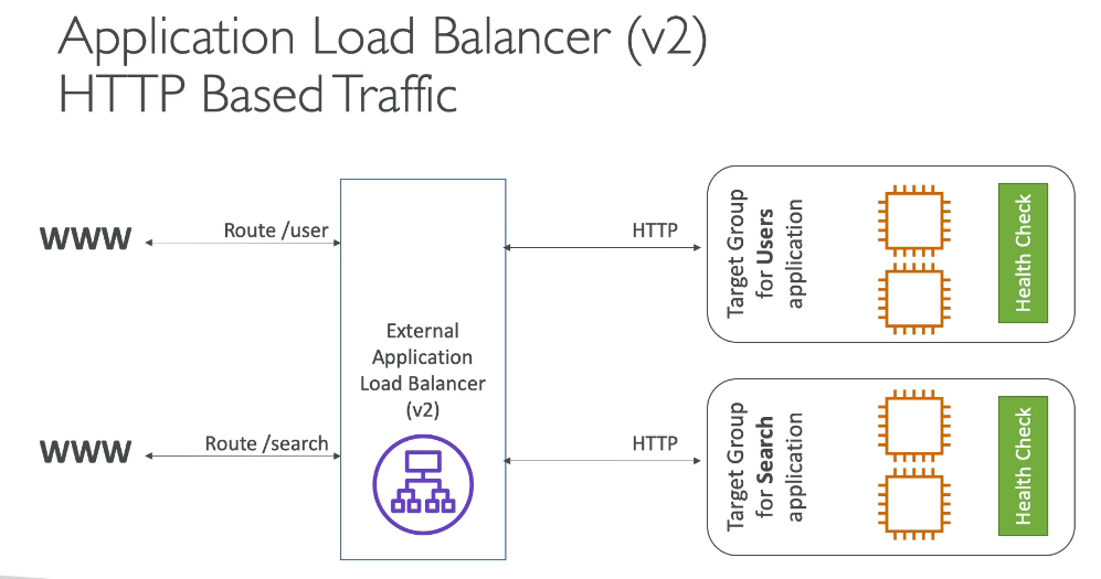 - ALB: HTTP/HTTPS 요청을 여러 Target Group으로 보낼 수 있음 (가중치 기반 분배 가능)