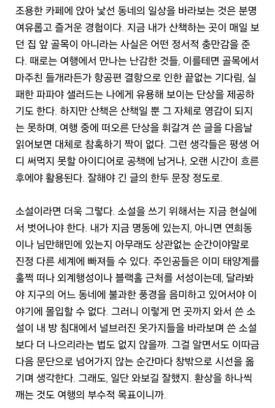 출처 :김초엽, [엘르보이스] 여행지에서 쓴 글
