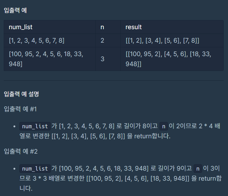 ✔️answer 배열 크기 = (num_list.length / n) x n