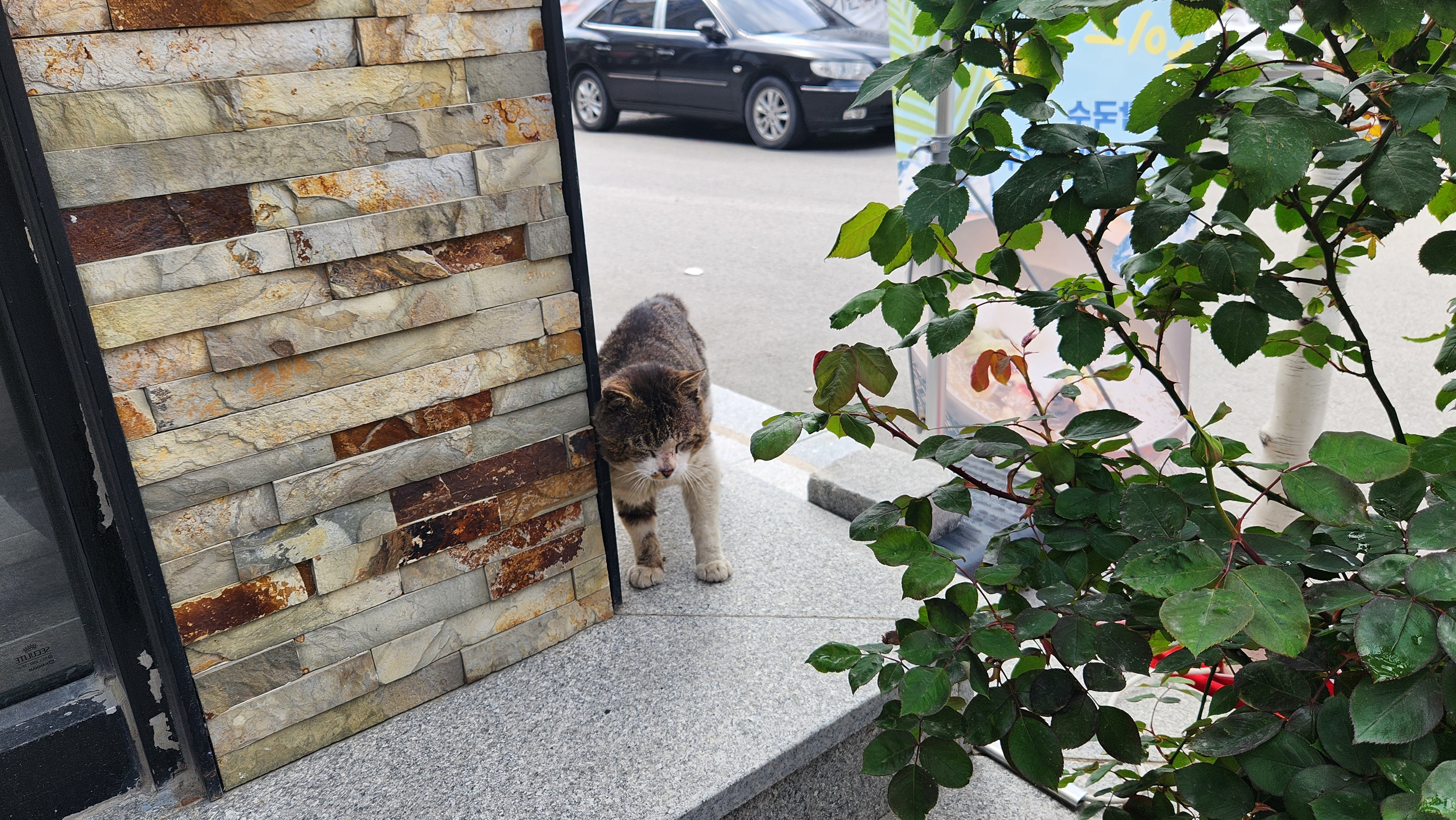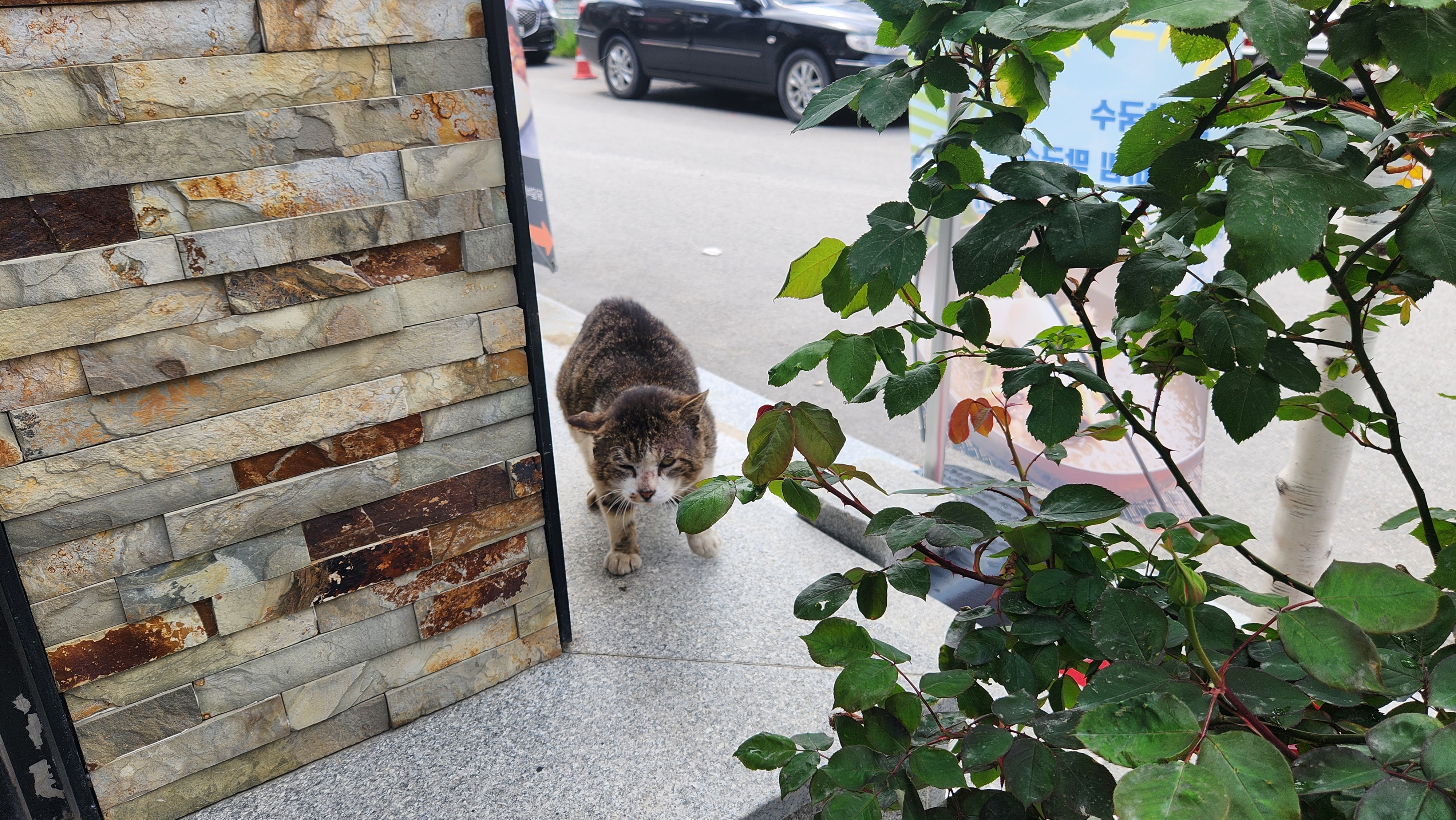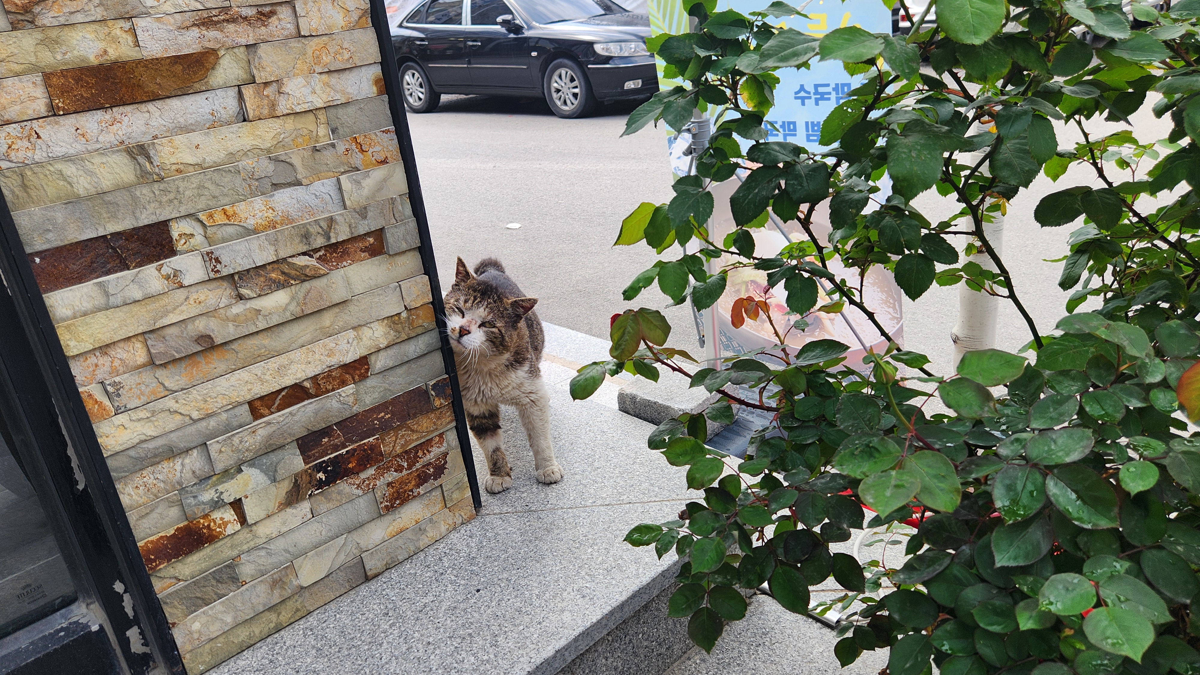 다먹고 나가는데 고양이가 문 옆에서 고개를 빼꼼 ><