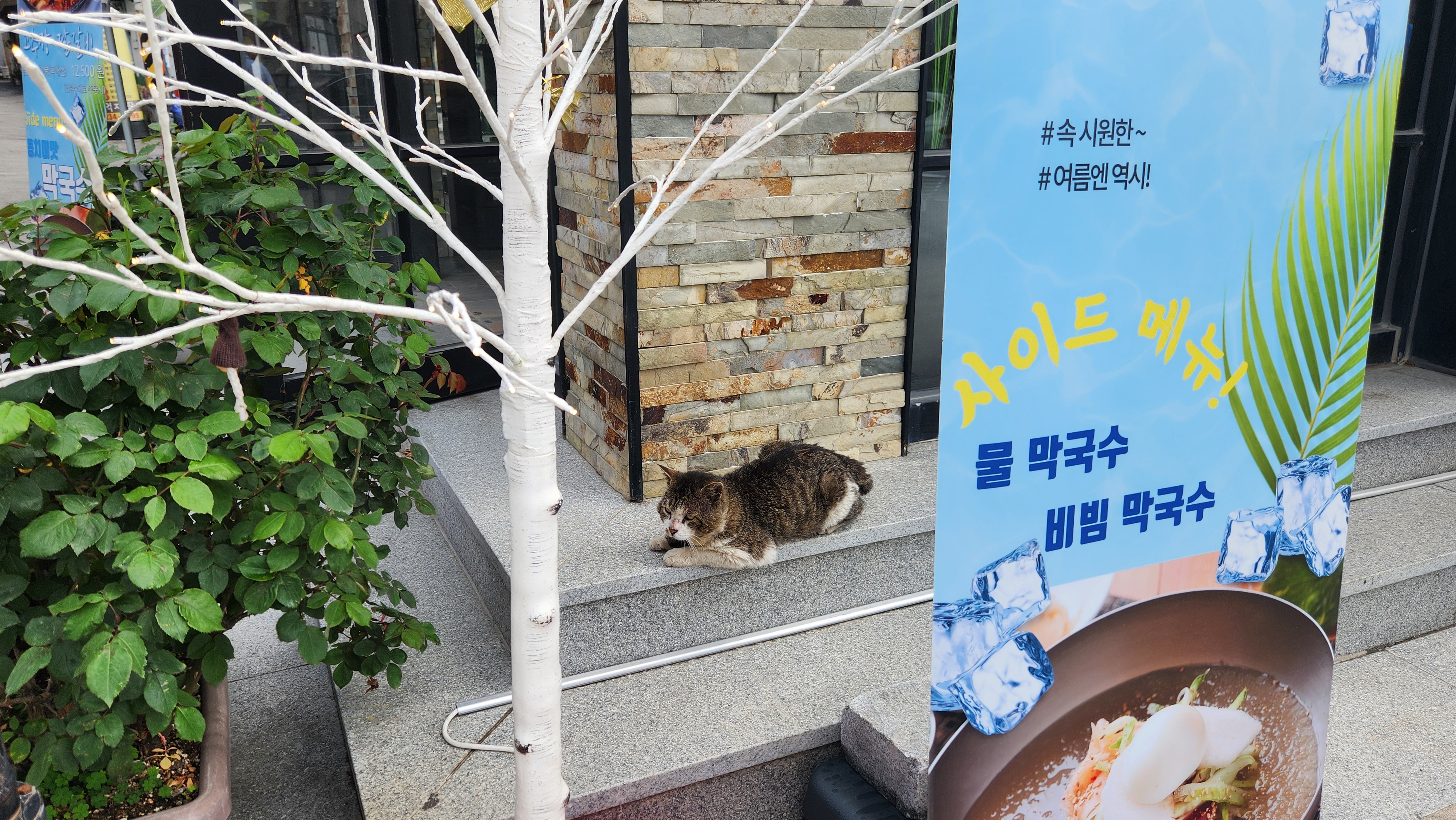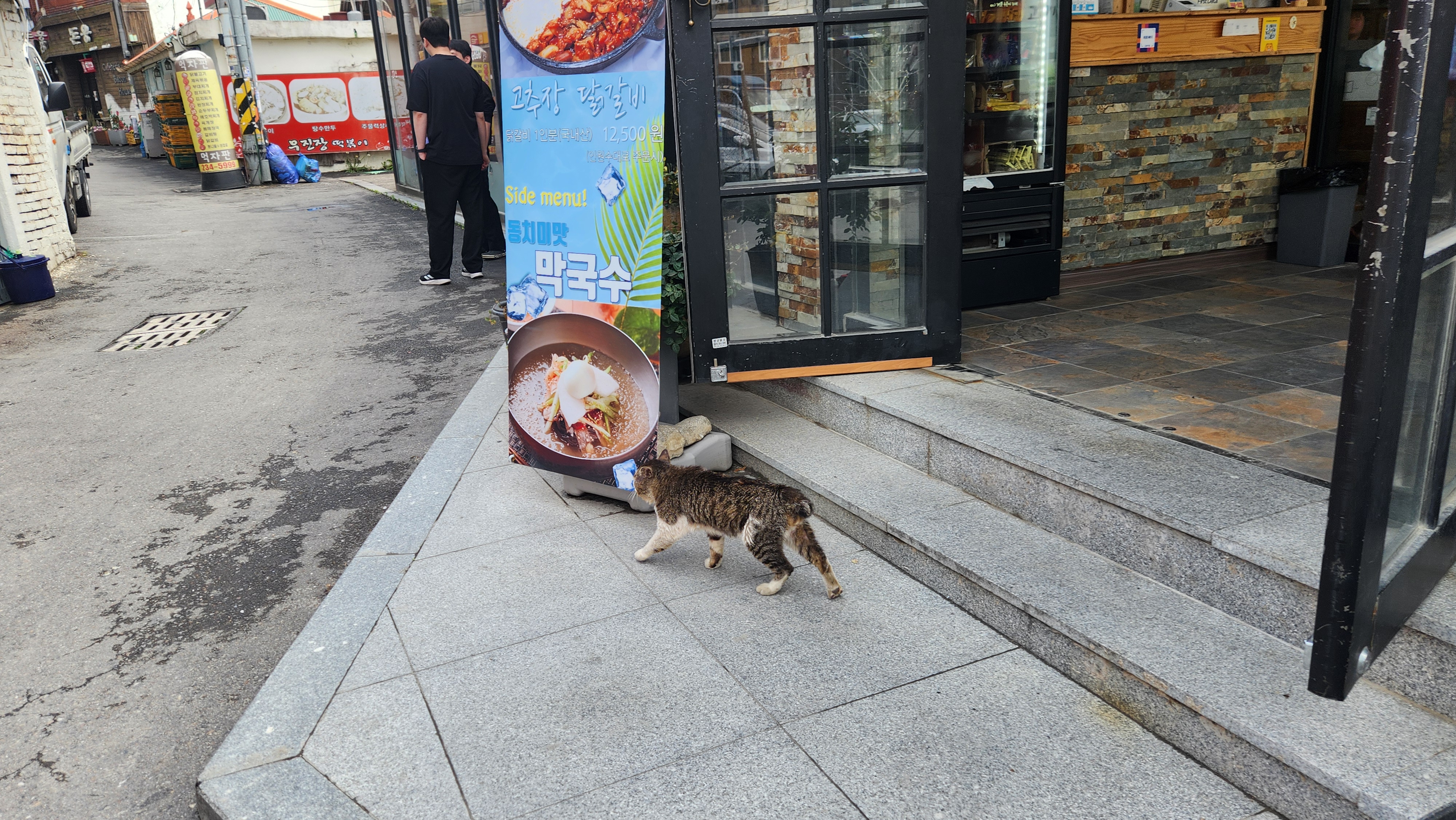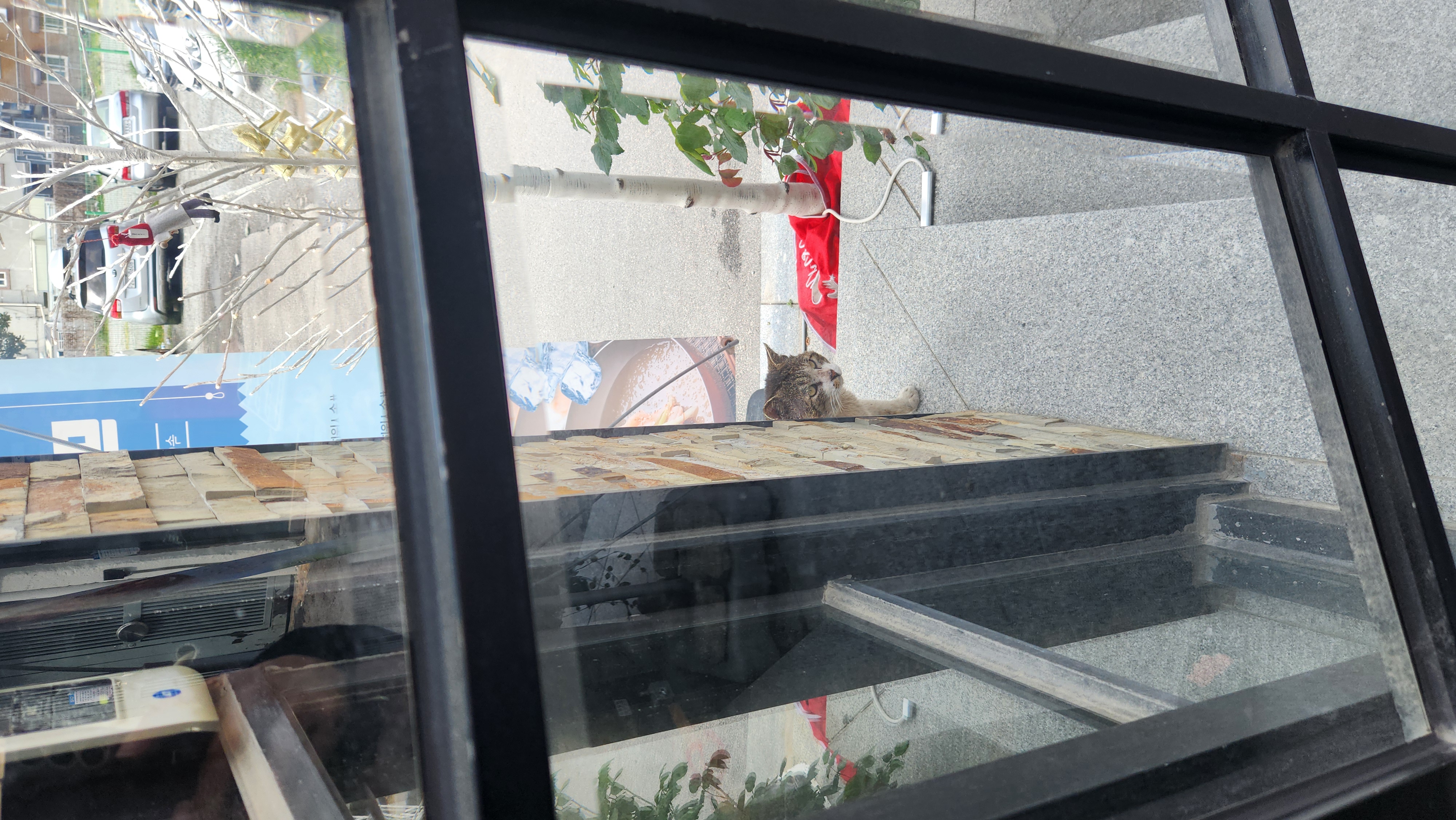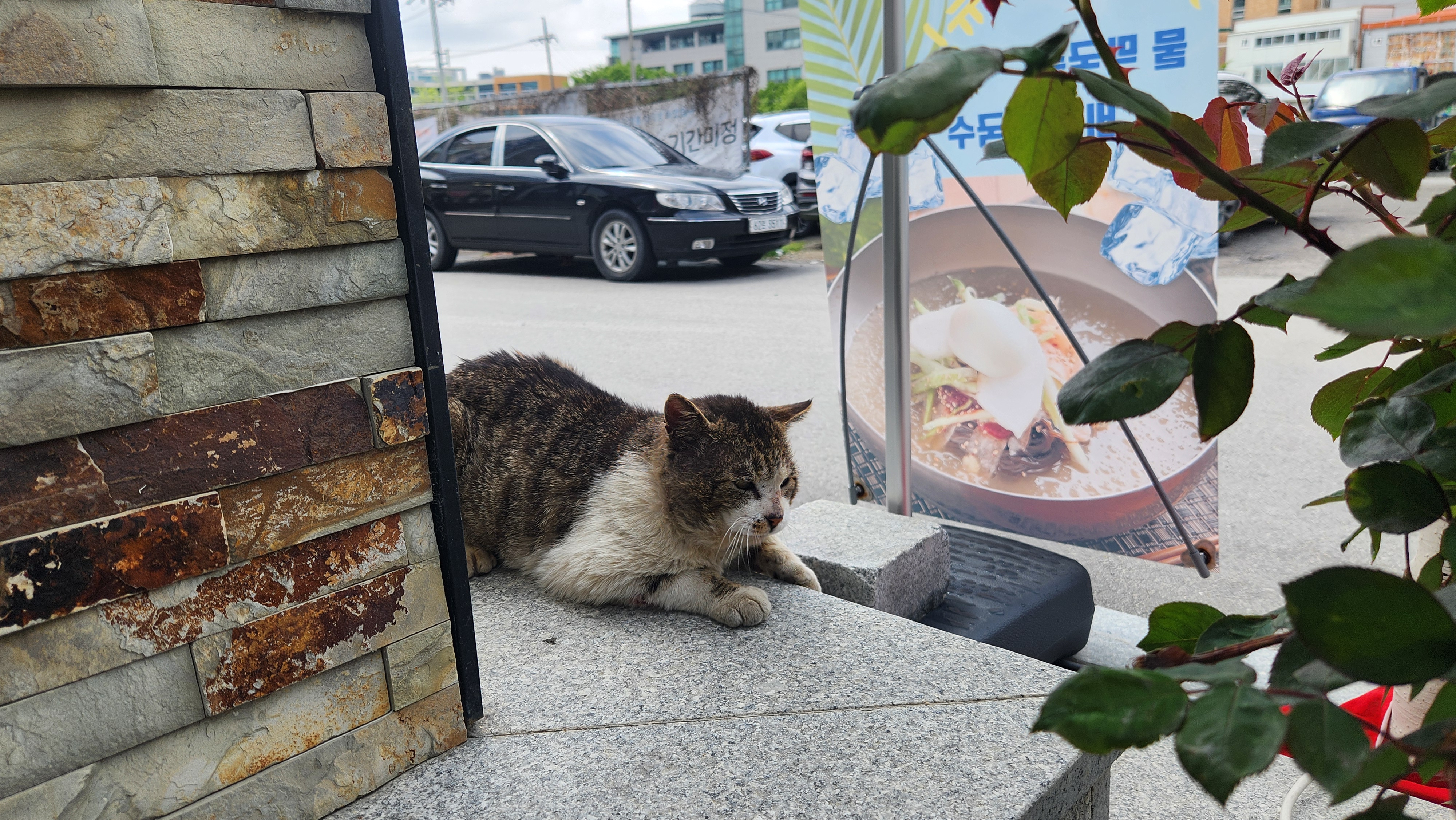 다먹고 나가는데 고양이가 문 옆에서 고개를 빼꼼 ><
