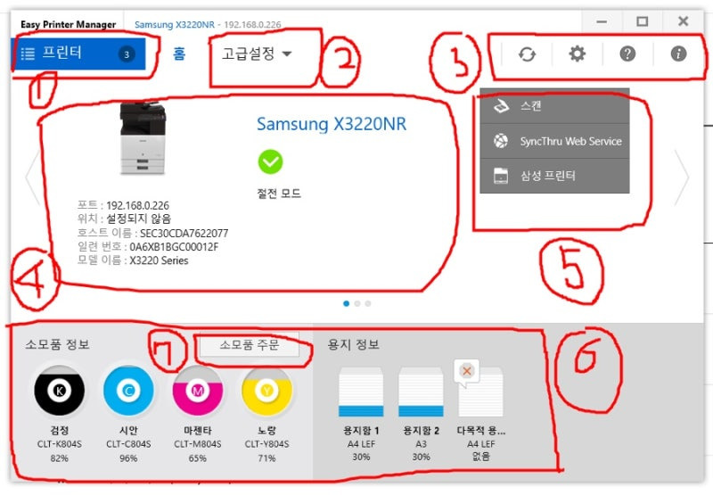 반면 삼성 복합기는 Samsung Easy Printer Manager 라는 소프트웨어를 사용한다.