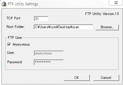 FTP Utility 이게 실행중이어야 스캔이 들어온다.