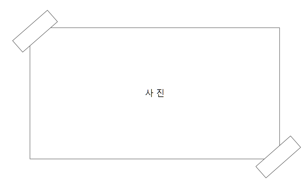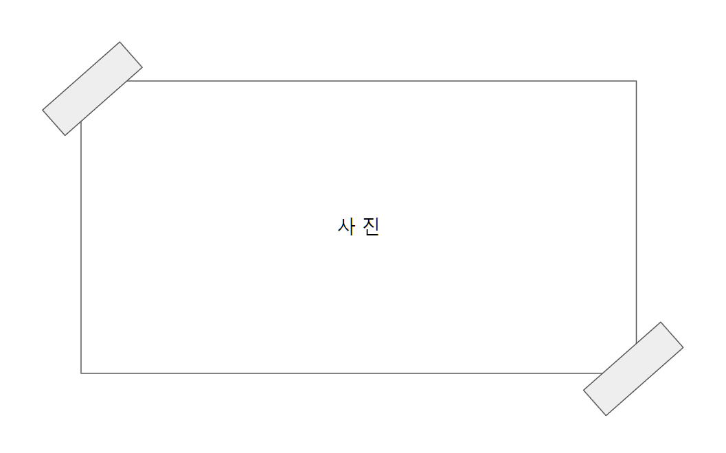 응용해서 위 코드에서 border-top 속성과 border-bottom 속성을 삭제하고, 의사요소의 background-color에 색을 입혀주면 사진에 테이프를 붙인 것처럼 연출할 수도 있습니다.