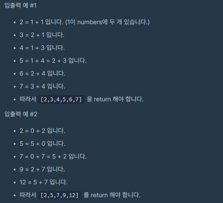 처음에 이중 for문의 범위를 잘못 잡았는데, 바깥 for문의 i 범위를 `i < numbers.length` 까지로 잡았었다.